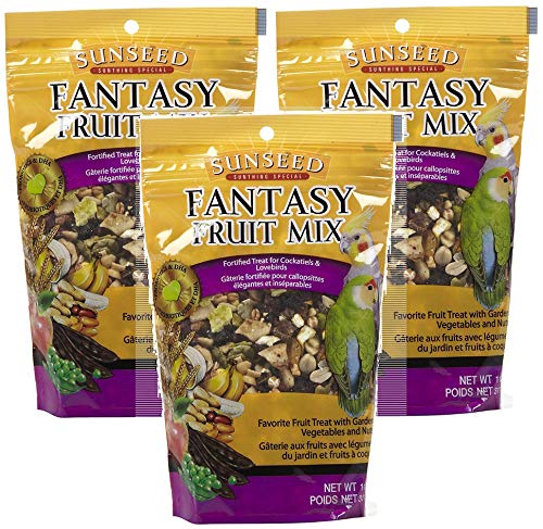 Brand: SunseedPartNumber: 59305Details: Delicious mixed fruit treat for cockatiels and lovebirds blended with nuts and tasty garden vegetables. Spe...