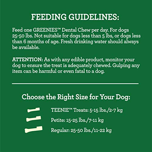 • GREENIES Treats for Dogs are veterinarian recommended for at-home oral care, keeping your 25-50 lb. puppy happy and their tail wagging