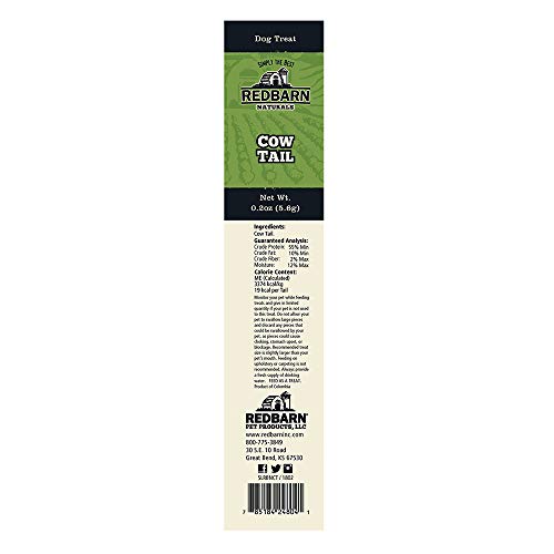 Details: Redbarn Cow Tails are all natural beef treats that are slow roasted to enhance the natural flavor dogs love. Their crunchy texture is sure to please even the most finicky eater while promoting overall dental health by gently scraping teeth as they chew! Each tail is slow roasted in its own juices to lock in flavor. Crunchy texture helps remove harmful plaque and tartar from teeth. Has a shelf life of 36 months.