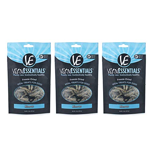 Vital Essentials Freeze-Dried Minnows Treats for Dogs Wild Caught USA Sourced & Made Omega 3 for Healthy Skin & Coat Supports Joint Health Weight Control Perfect for Training 3 Pack - 1 oz Each Pouch